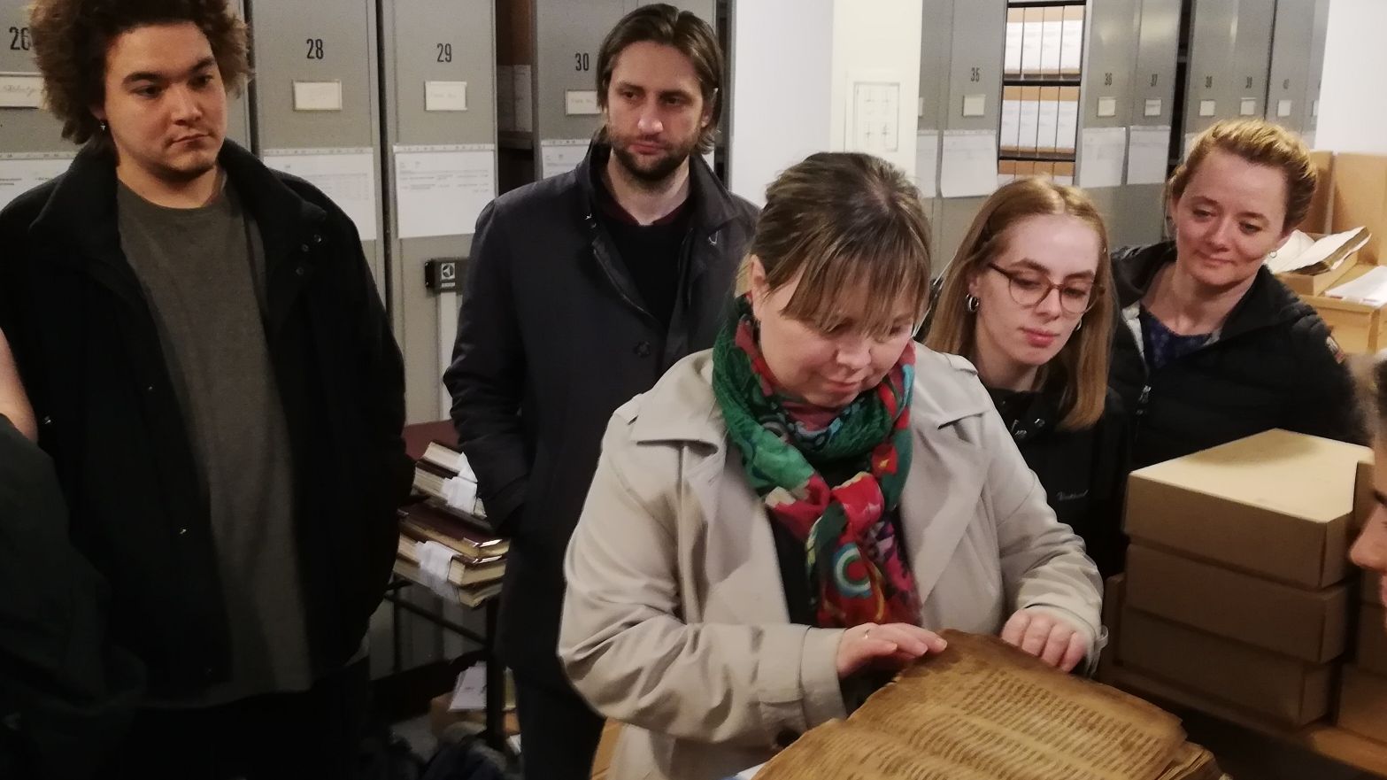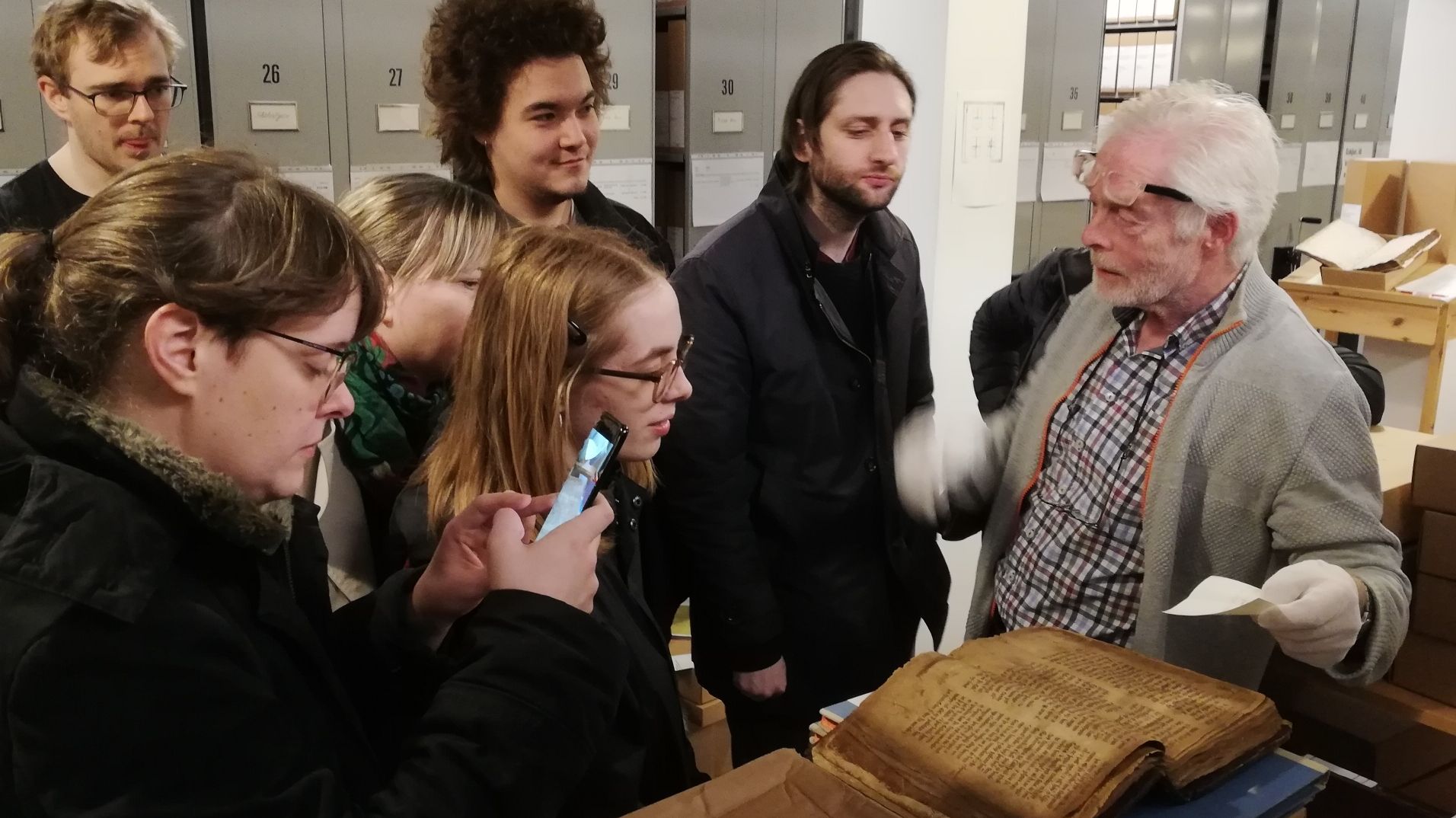 Herfyri vóru lesandi á Føroyamálsdeildini hjá Fróðskaparsetrinum á vitjan á Tjóðskjalasavninum.